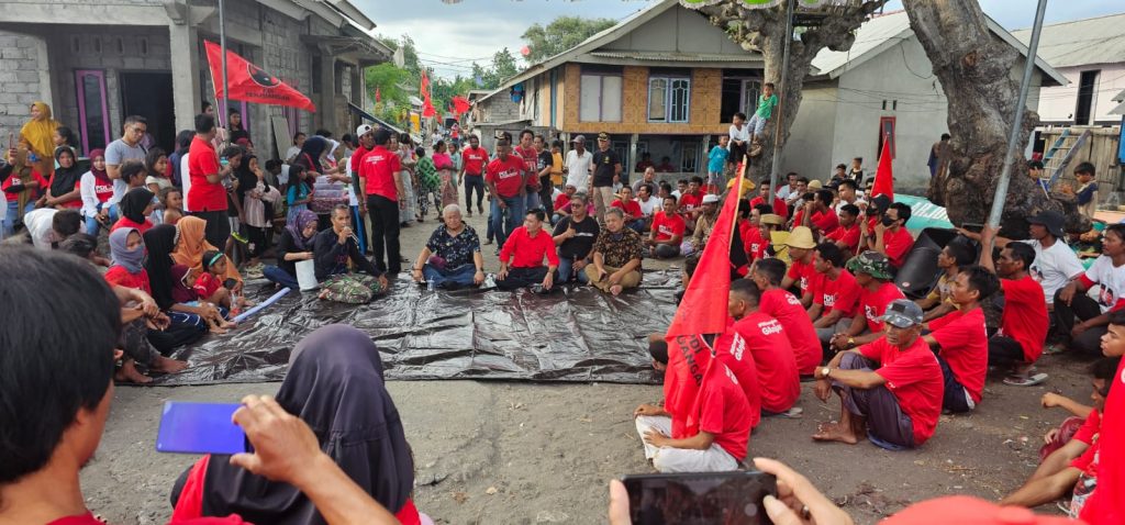Tampak juga bendera PDIP bertebaran dan berkibar di kanan jalan disepanjang Jalan Raya Tanjung Luar maupun Jalan menuju Pantai.