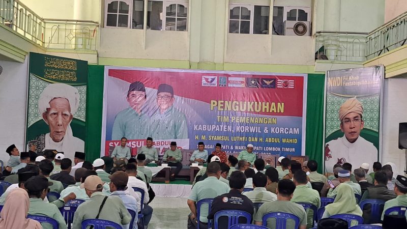Halontb.com – Pasangan Calon Bupati dan Wakil Bupati Lombok Timur, H. M. Syamsul Luthfi – H. Abdul Wahid atau yang dikenal dengan Luthfi-Wahid mengukuhkan tim pemenangannya, baik tim kabupaten, koordinator wilayah (Korwil), koordinator kecamatan (Korcam) dan relawan di Gedung Birrul Walidain NWDI Pancor, Rabu, 18 September 2024
